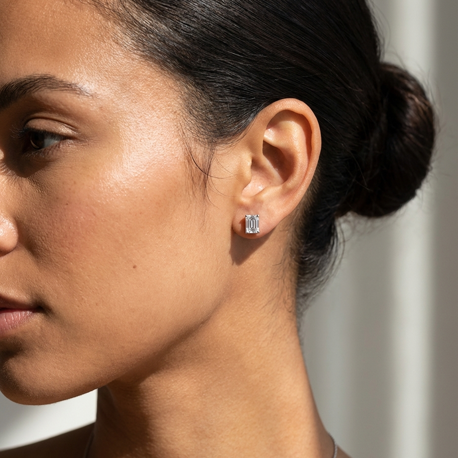 Emerald cut diamond stud earrings